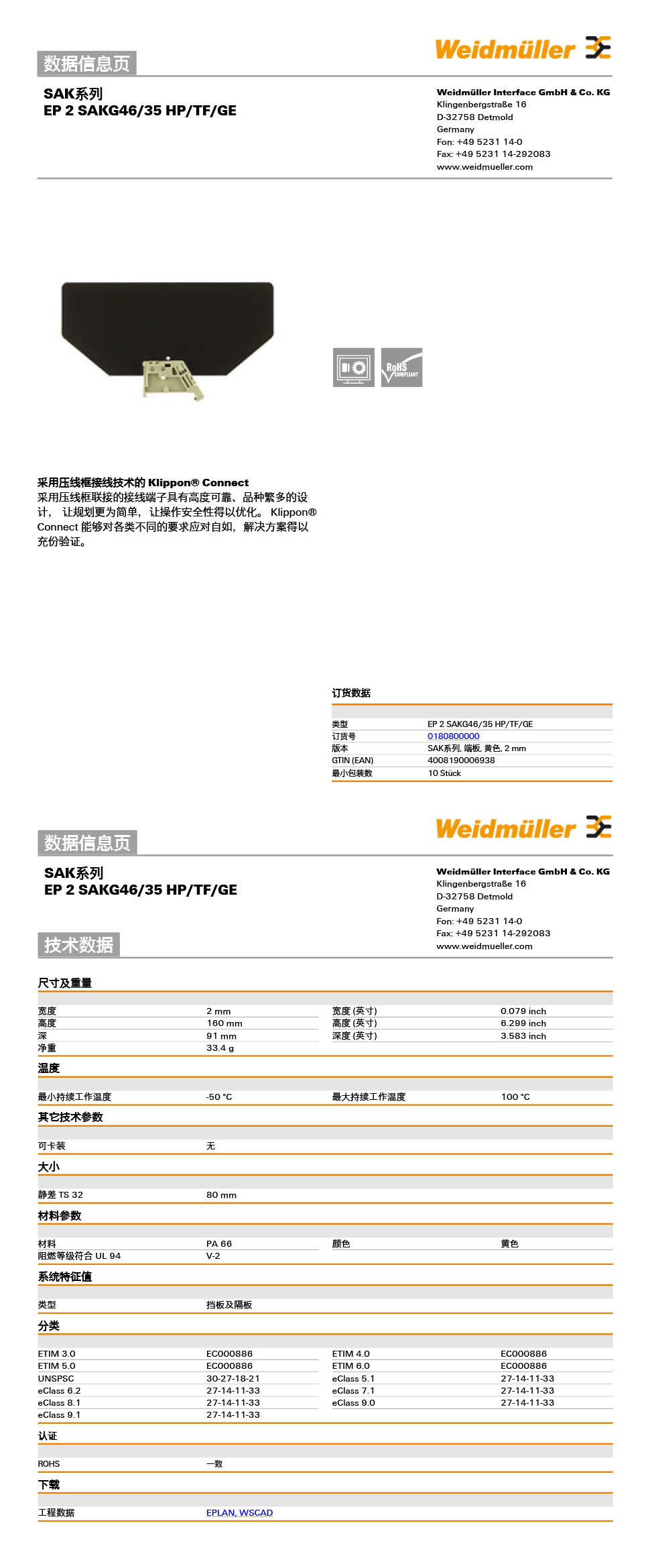 魏德米勒 > SAK系列 > SAK系列 SAK压线框接线端子附件-端板
